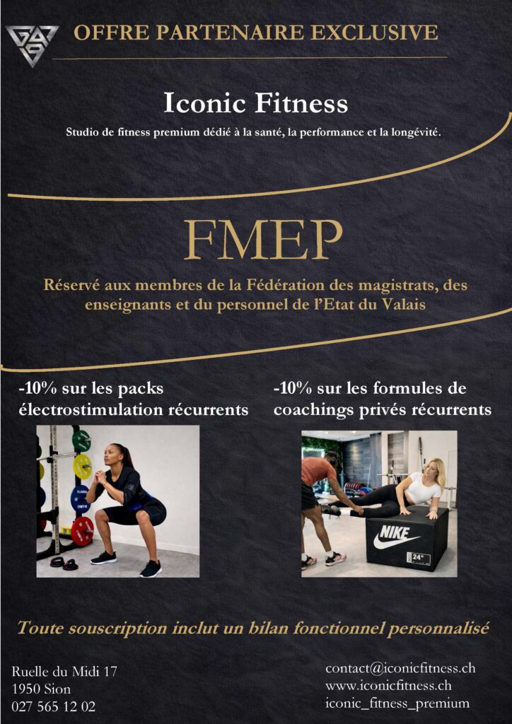 La FMEP a le plaisir de vous informer qu’en tant que membre FMEP, vous bénéficiez d’un rabais auprès du fitness Iconic à Sion.